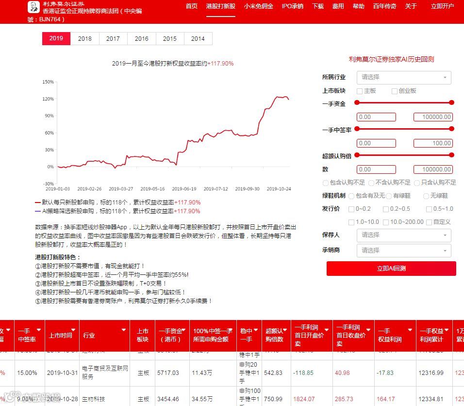 ②打新以及短线交易的数据全,信息多,app以及网页上面有最全面打新咨询信息以及知识干货,最近6年以来所有港股上市新股的大数据图表,最专业的实时量化打新数据。