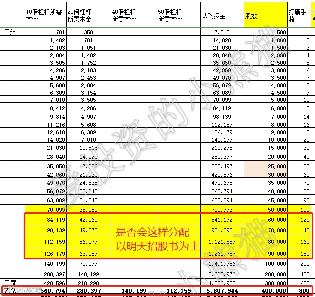 甲组必中一手,必中一手大概率100手,这次大概率不会超过200手的,不知道明天招股书上面具体怎么分,如果是和我下面的这个分配方案一样的话那就难猜了,反正大甲组至少认购100手以上200手以下任意挑吧。95孖展的话资金在3.5万-7万之间。