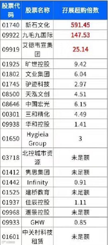 下面表格里根据不同的超额认购倍数,分别所对应的中签率也大家列出来了: