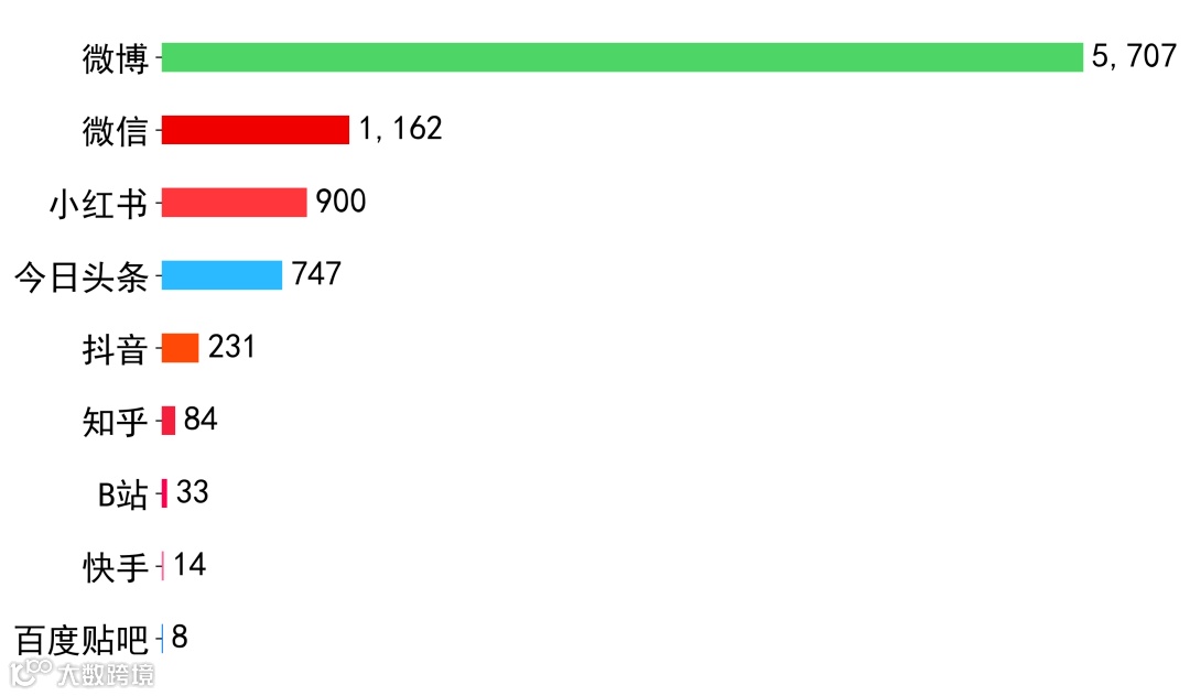 该事件全网传播篇次为13625条,事件主要传播渠道为微博平台,传播篇次5707条,占比41.89%。