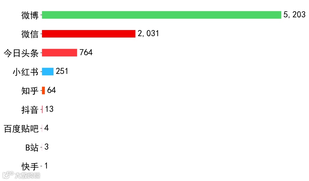 该事件全网传播篇次为12444条,事件主要传播渠道为微博平台,传播篇次5203条,占比41.81%。