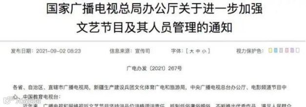 国家广播电视总局办公厅发布关于进一步加强文艺节目及其人员管理的通知:坚决反对唯流量论。广播电视机构和网络视听平台不得播出偶像养成类节目,不得播出明星子女参加的综艺娱乐及真人秀节目。选秀类节目要严格控制投票环节设置,不得设置场外投票、打榜、助力等环节和通道,严禁引导、鼓励粉丝以购物、充会员等物质化手段变相花钱投票,坚决抵制不良“饭圈”文化。坚决抵制高价片酬。严格执行演员和嘉宾片酬规定,严格片酬管理告知承诺制度。倡导鼓励演员和嘉宾担当社会责任,参与公益性节目。严肃惩戒片酬违规、“阴阳合同”、偷逃税行为。(证券时报)