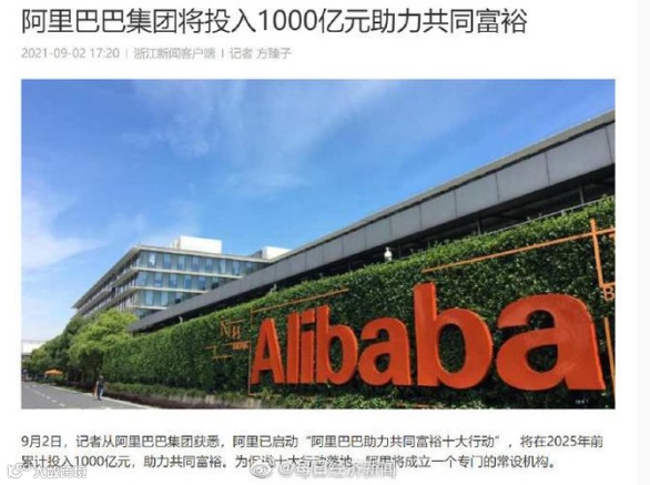 从阿里巴巴集团获悉,阿里已启动“阿里巴巴助力共同富裕十大行动”,将在2025年前累计投入1000亿元,助力共同富裕。为促进十大行动落地,阿里将成立一个专门的常设机构。(浙江新闻)