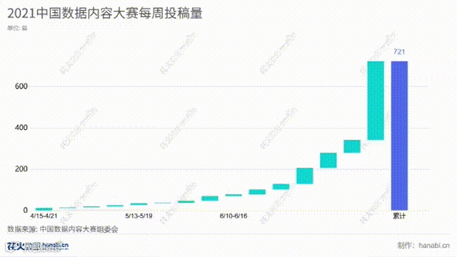 大赛自启动以来,受到众多高校、媒体和机构等内容创作者的关注和支持。本次大赛共有1038人报名,接收投稿作品721份,初筛通过655篇,目前大赛已经正式进入评审环节,由19位来自数据内容领域的专家对参赛作品进行评审,并于8月20日公布入围(Longlist)作品和作者/机构名单。