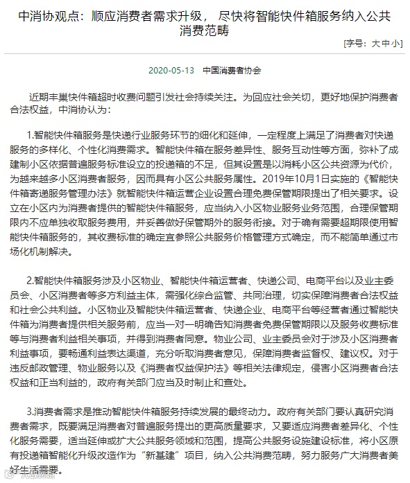 另外根据最新消息,5月13日中消协对丰巢事件进行回应。