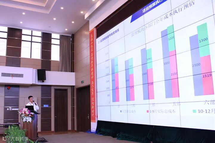 副总裁陈铭辉的报告以工作绩效、预算执行情况为主,全景式通报了前三季度经营情况,对优势和取得成绩做了总结肯定,对存在问题提出了警示。同时对各部门全年成本执行情况做了通报,他强调,前三季度年合同完成率虽然差距不大,但是整体的开票率和回款率还未完成任务,最后一个季度全员要全力以赴才能完成全年目标任务,为集团化运营奠定基础。