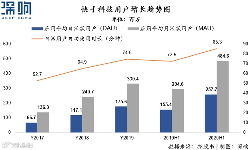 随着快手不断壮大,更多普通用户在新的产品形态和内容体系下得到回报,招股书披露,2017年、2018年及2019年与截至2020年6月30日止六个月,分别有600万人、1800万人、2300万人及2000万人在快手获得收入,其中很多在偏远地区。