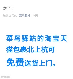 淘宝联合菜鸟驿站在北京、上海和杭州三城推出淘宝包裹按需送货上门,截至目前超90%站点已开通此服务。据介绍,淘宝包裹入站后,消费者可通过手机淘宝App自主选择送货上门或驿站自提,两项服务均不产生任何费用。菜鸟驿站方面表示,此服务将陆续推向全国。(36氪)