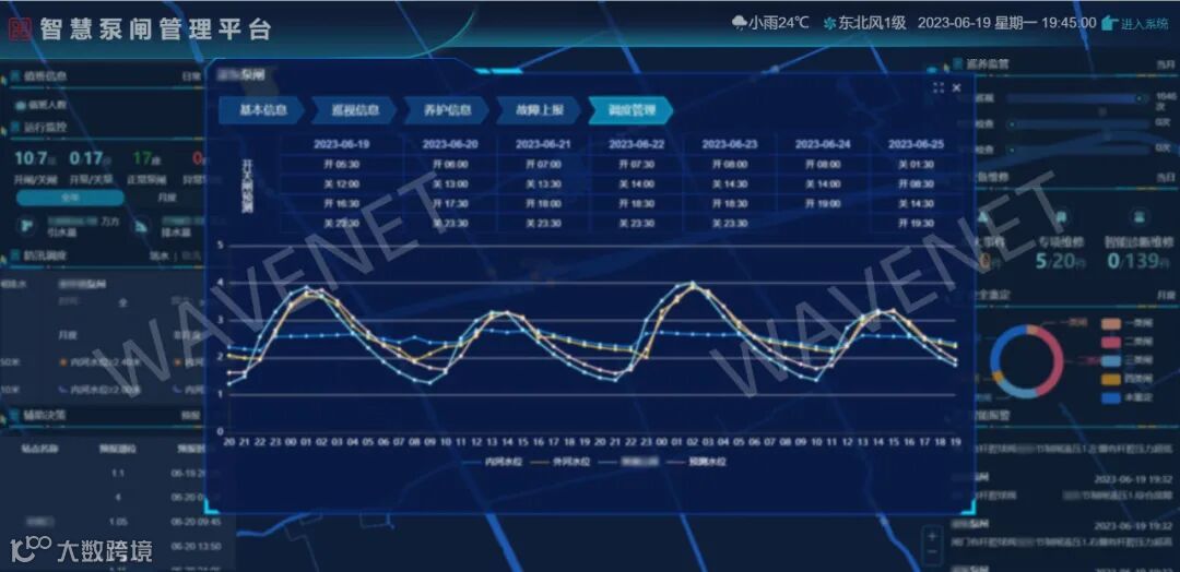 随着近些年智慧水利建设的蓬勃发展和物联网技术的应用普及,泵闸智慧运维平台应运而生,将更智能化的信息系统应用于泵闸管理中,为水利工程管理带来了全新的机遇和更先进的解决方案。网波股份技术团队综合运用GIS、BIM、数字孪生、AI、模型等新兴技术,研发了泵闸智慧运维平台,通过构建数字场景,实现数据驱动决策、虚实融合交织、信息互通互联,为城市防汛安全提供动能和保障。