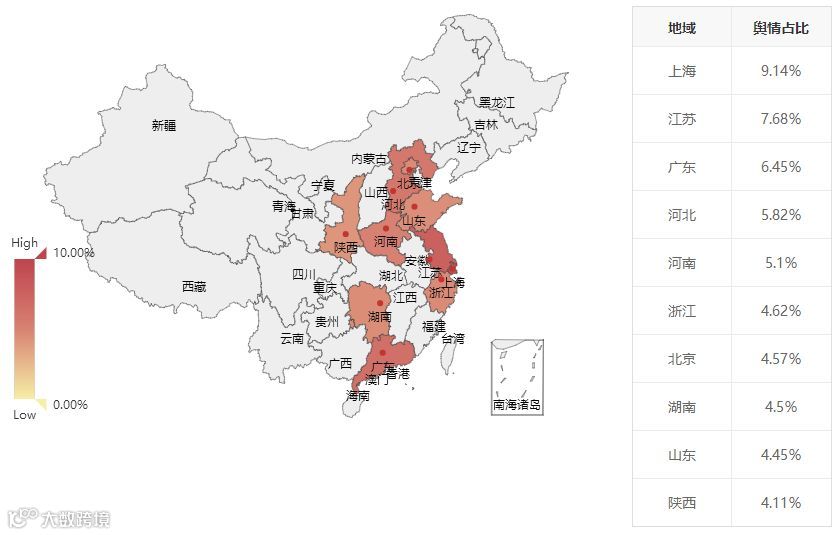 从地域舆情信息覆盖的情况来看,上海、江苏、广东的热议度较高,占比分别达到了,与去年同期相比,30~39岁依旧是对月饼话题关注度最高的人群,占比达到55%,其次是40~49岁的人群,由此可见,年轻人对月饼的关注度相对较低,当然也可能是因为中年群体由于过节送礼的原因,所以对月饼的关注度更高。