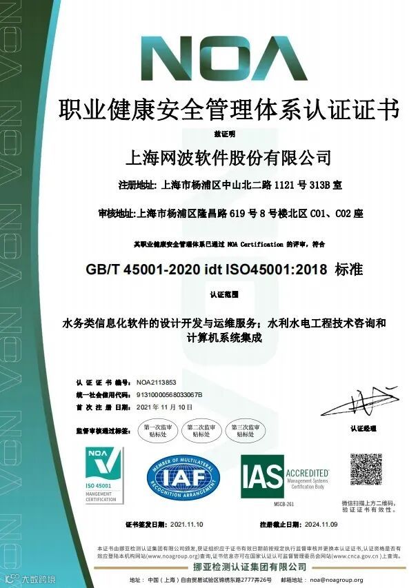 近日,在公司各部门领导以及全体员工的积极配合下,上海网波软件股份有限公司再次通过ISO三体系认证评定。成功颁发ISO三体系认证的证书。 ISO三体系认证包括《质量管理体系ISO9001:2015认证》、《环境管理体系ISO14001:2015认证》、《职业健康安全管理体系ISO45001:2018认证》。此举证明了公司管理体系及产品的高质量水平。