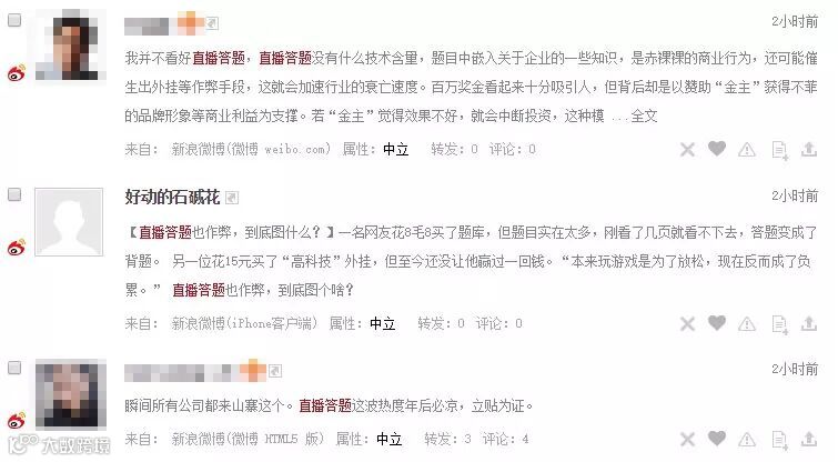 网友对“直播答题”存在的问题表达了自己的看法