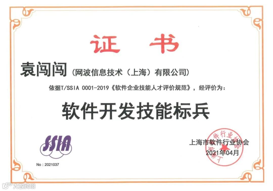 网波人|徐雨锋,袁闯闯获评2021年上海市"软件开发技能标兵"荣誉称号