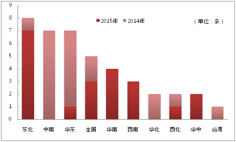2、2015年所在的东北、华南、西南一带的食品舆情事件数量突发猛增