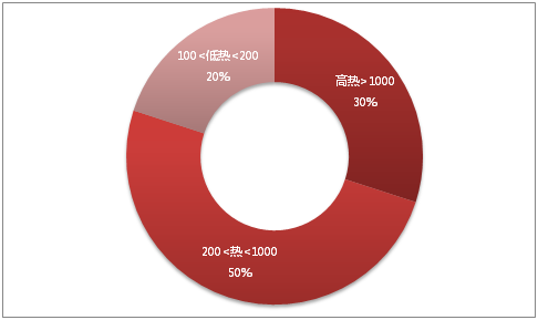 从事件的热度分布来看,20个事件的热度分布不均,最高热度值和最低热度值相差太远。据红麦统计发现,高热度值区间的事件占比30%,低热度区间的数量占比20%(见图5)。特别重大食品安全事件往往热度很高,例如,海关查获大量走私“僵尸肉”事件,传播时间持续性较长,而且地域覆盖范围也较广。