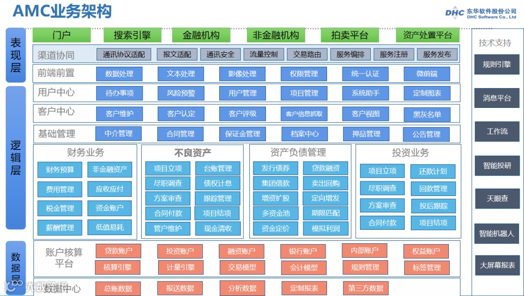此次中标与以往不同,AMC综合业务运营管理系统,并非以往单一独立的一个产品,而是以综合经营管理、和综合办公管理两大系统为主,多个子系统集合而成。其功能模块包含:移动办公、财务管理、资产负债管理、不良资产管理、投资管理、总帐核算、图像扫描技术、经营决策报表、智能推送、审批流管理、系统内管、辅助决策……等等,诸多关键功能模块,其任务重,难点高!