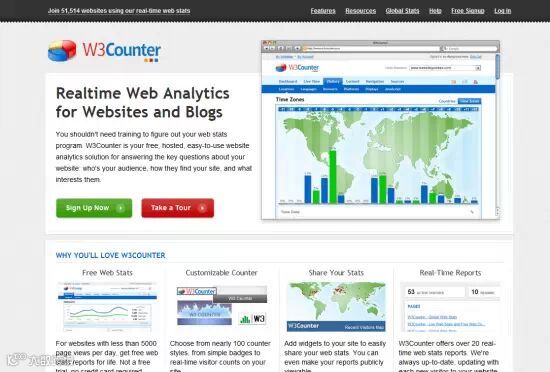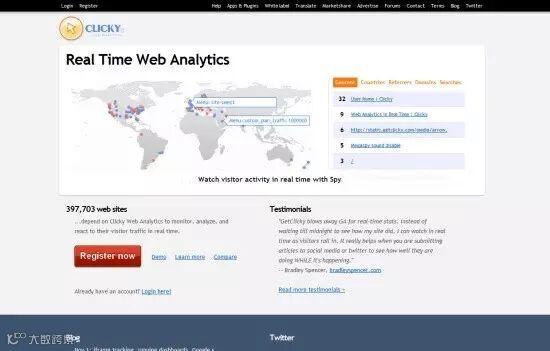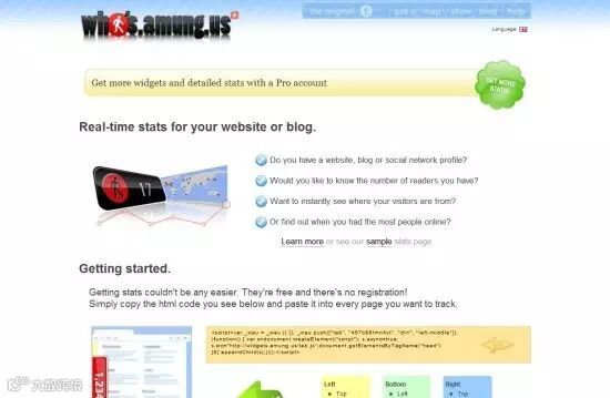Whos.Amung.Us相当独特的,它可以嵌入你的网站或博客中,让你获得实时统计数据。包括免费和付费两个版本。