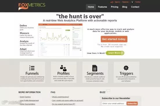Woopra将实时统计带到了另一个层次,它能实时直播网站的访问数据,你甚至可以使用Woopra Chat部件与用户聊天。它还拥有先进的通知功能,可让你建立各类通知,如电子邮件、声音、弹出框等。