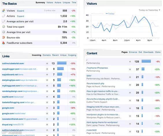 通过该工具你可以跟踪目前的访客、查看来源链接和来自搜索引擎的流量等。这项服务是免费的。