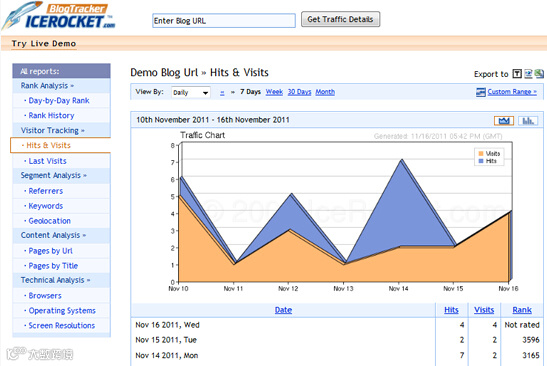 你可以获得跟踪代码或计数器,并查看统计数据。如果你点击“Rank”,你会看到你的博客和其他博客的对比结果。