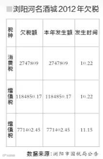记者随后在浏阳市国税局官网查询发现,其“欠税公告栏”只有2013年2月发布的一条信息,上面列出的6条欠税名单中,3条是浏阳河国际名酒城,欠税税种分别是消费税、增值税、增值税,欠税发生额分别为274.78万元、118.485万元、77.14万元(后二者增值税合计为195.625万元)。