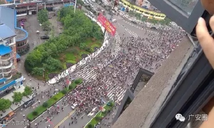 5月16日上午,四川广安邻水群众自发在县城聚集游行,并引发围观。