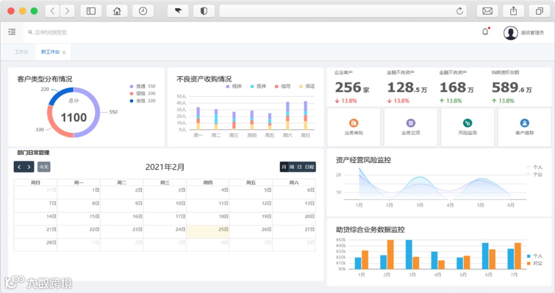 东华软件地方AMC综合业务管理系统,在操作界面设计上采用扁平化的设计理念,通过微前端架构将处置、投资、财务、工作流等系统的前端整合到一起,同时采用统一的用户中心后台,作为认证与授权的中心,用户只需登录一次就可以访问各个业务系统。系统设计结合AMC各业务部门的管理、核算、运营需求,提供多个软件产品的综合解决方案,包括:移动办公,财务管理、资产负债管理、不良资产管理、投资管理、总账核算、审计管理、报表平台、基础服务平台等子系统。系统支持影像识别、机器人报送、会计核算、高级分析决策、经营状况报表等关键功能,提供消息主动推送、业务预警、工作流推进、规则引擎、大数据分析、辅助决策等能力,不断增强AMC业务处理能力,优化投资方案,赋能风险管理,深挖数据价值,积极拥抱“互联网+”,为地方AMC全方位数字化转型赋能。