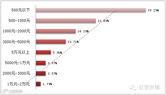 据红麦舆情数据显示,在消费金额方面,其中500元以下的人群居多,占比为39.29%;其次是消费500-1000元的人群,占比为21.43%(见图5)。