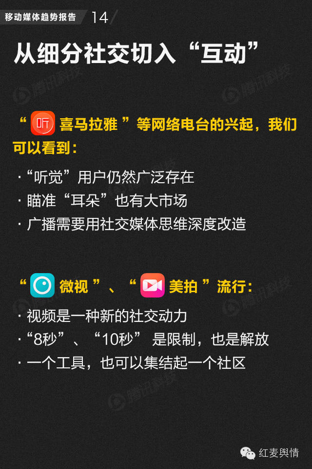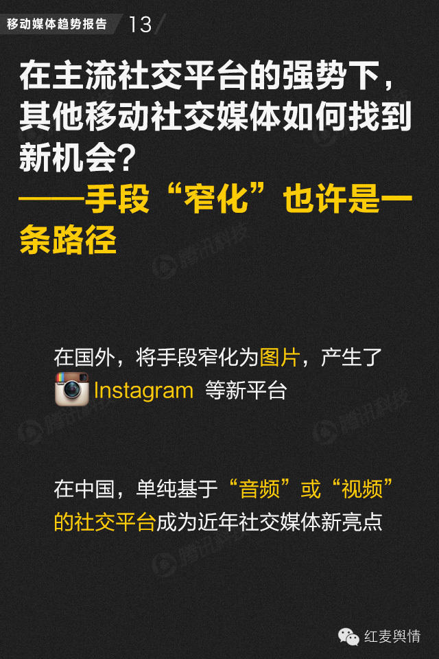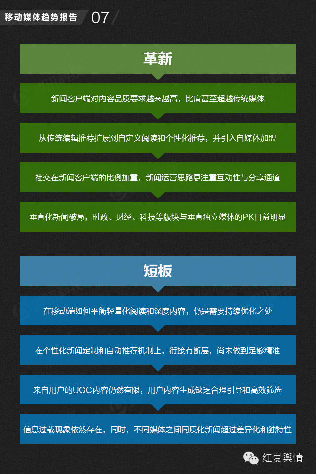新闻客户端的社交深化;UGC和内容众包模式升级;入口向平台转化加速;可穿戴设备带来数据资源扩张;移动服务客户端的“媒体化”可能。