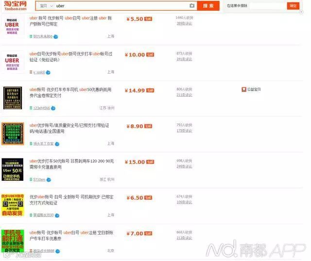 而腾讯科技调查发现,Uber的刷单情况的确十分严重,仅淘宝一个渠道,就买卖了20万左右的Uber乘客账户。而淘宝订单主要是以小散用户为主,更多大量批发的用户是通过电话、QQ等私下接洽完成。通过刷单所产生的虚假订单总量,预计将达到百万量级。