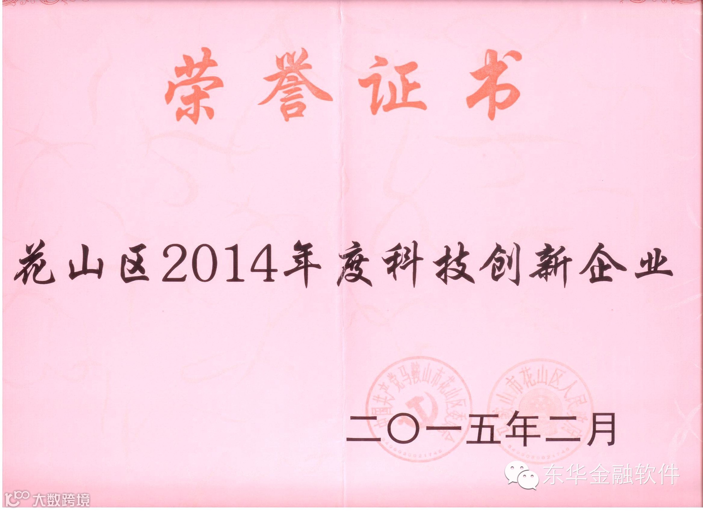 日前,东华软件下属子公司东华软件工程有限公司被马鞍山市花山区委、区政府授于“花山区2014年度优秀互联网企业”、“花山区2014年度科技创新企业”证书。