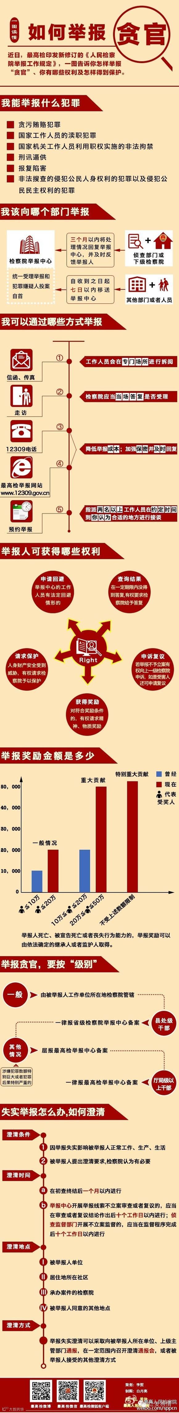 最近,最高检印发新修订了《人民检察院举报工作规定》,一图告诉你怎样举报“贪官”、你有那些权利及怎样得到保护。