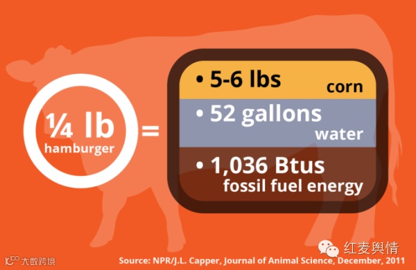 虽然有某些研究指出美国的肉类消费正在下降,但是全世界范围的整体肉类消费正在上升。从某种程度上来说这是个好消息,因为这意味着一些曾经贫穷落后的国家现在可以买得起更贵的食物了。尽管这是世界经济环境改善的信号,但是这对于我们的环境和身体健康来说就不是一件好事了。而且那些动物工业区的名声也不太好。不过我们暂时先放下这些虐待动物的问题,先来看看下面的一些数字,我们要消耗5到6磅的玉米,52加仑的水和超过1,000 BTU的石油才能得到一块四分之一磅的牛肉饼。