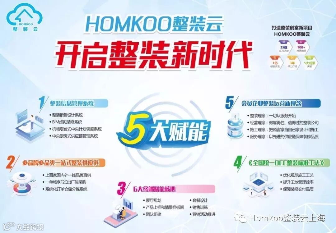 HOMKOO整装云平台运用整装销售管理赋能、供应链赋能、营销赋能、软件系统赋能等四大赋能,助力装企全面实现软硬装设计一体化,主辅材、定制家具、配套品采购一体化,施工一体化,打造真正的整装一体化,在整装大势里打造“真整装”,形成了极强的差异化竞争力,最大限度地解决家装的难点、痛点。
