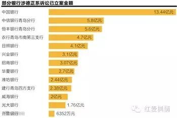 6月18日,据《东方早报》转引财新网报道称,关于进出口银行40亿元,其中包括中行21亿元,工行、建行、农行及民生银行分别为10亿元在内,另加青岛当地的日照银行、齐鲁银行、恒丰银行各在7亿-8亿元,而其他股份制银行如中信银行、兴业银行、招商银行等,各在5亿-6亿元。