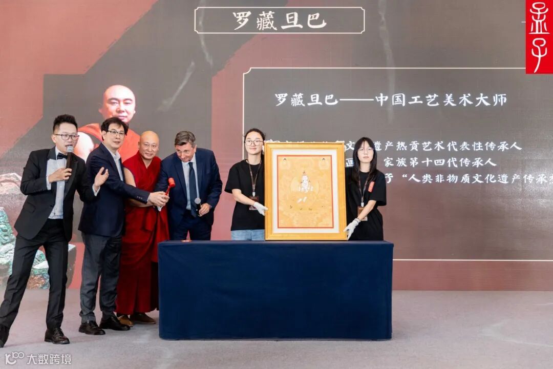 罗藏旦巴大师系第七届中国工艺美术大师、国家级非物质文化遗产热贡艺术代表性传承人,其家族传承热贡艺术已逾十四代。热贡艺术作为藏传佛教艺术的重要流派,以精美的唐卡绘画、雕塑等著称,2006 年被列入首批国家级非遗名录,2009 年入选联合国教科文组织人类非物质文化遗产代表作名录。罗藏旦巴大师深耕唐卡艺术创作四十余年,其作品兼具宗教文化内涵与艺术审美价值,多次作为国礼赠予国际友人。