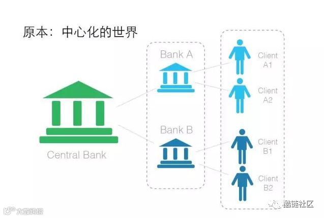 如果会计要打给每人一分钱或者是一块钱的时候,会首先汇到银行,由银行账户转到个人账户。这种中心化的节点,也就是中心化的信任是我们习以为常的,但也存在一定问题。因为我们都是基于对银行的信任把我们的所有权交给它,但是如果银行做了篡改,那我们就会处于危险境地了。