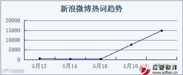 如下图,以新浪微博为例,在5月17号之前,有关南京及南京地铁的信息量较少,而且保持平稳态势;5月17号发生南京地铁小孙子打奶奶事件后,信息量大增,呈现直线增长趋势,截止20号信息量已达到14915条。