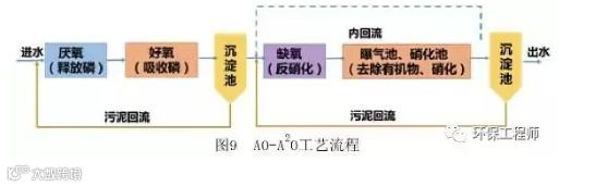 其后,为了解决脱氮时硝化菌需要长泥龄,除磷时聚磷微生物需要短泥龄的矛盾,开发了AO-A2O工艺(如图9)。该工艺由两段相对独立的脱氮和除磷工艺组成,第一段泥龄短,主要用于除磷,第二段泥龄长、负荷低,用于脱氮。