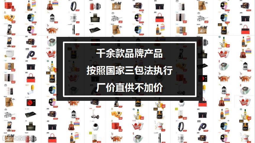 到目前为止产品供应链已经和全中国甚至世界几千家的生产企业达成了深度的战略合作,包括现在的美的、海尔、荣事达、苏泊尔、志高、茅台、泸州老窖、索尼等等、所有的产品支持在京东 、天猫 、1号店、苏宁易购等B店同款比价;产品承诺绝对正品,假一罚十、所有的产品支持国家三包法服务(质量问题保修包退包换)