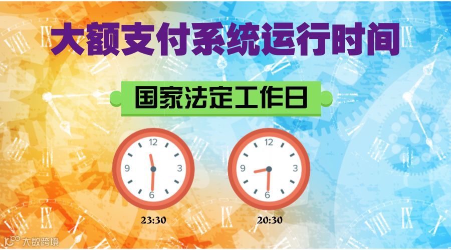 尽管大额支付系统的运行时序调整为5X21小时,但是,大额支付系统提供服务的时间仍旧是国家法定工作日,牢记哦!