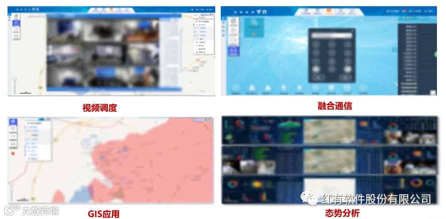 通过调用GIS地理信息、视频监控等系统;接入视频会议系统,IP话机等通讯设施,实现各业务要素的地图展示、值守部位的视频监控、指挥等功能,达到数据可视化、音视频一体化的指挥调度处突能力。