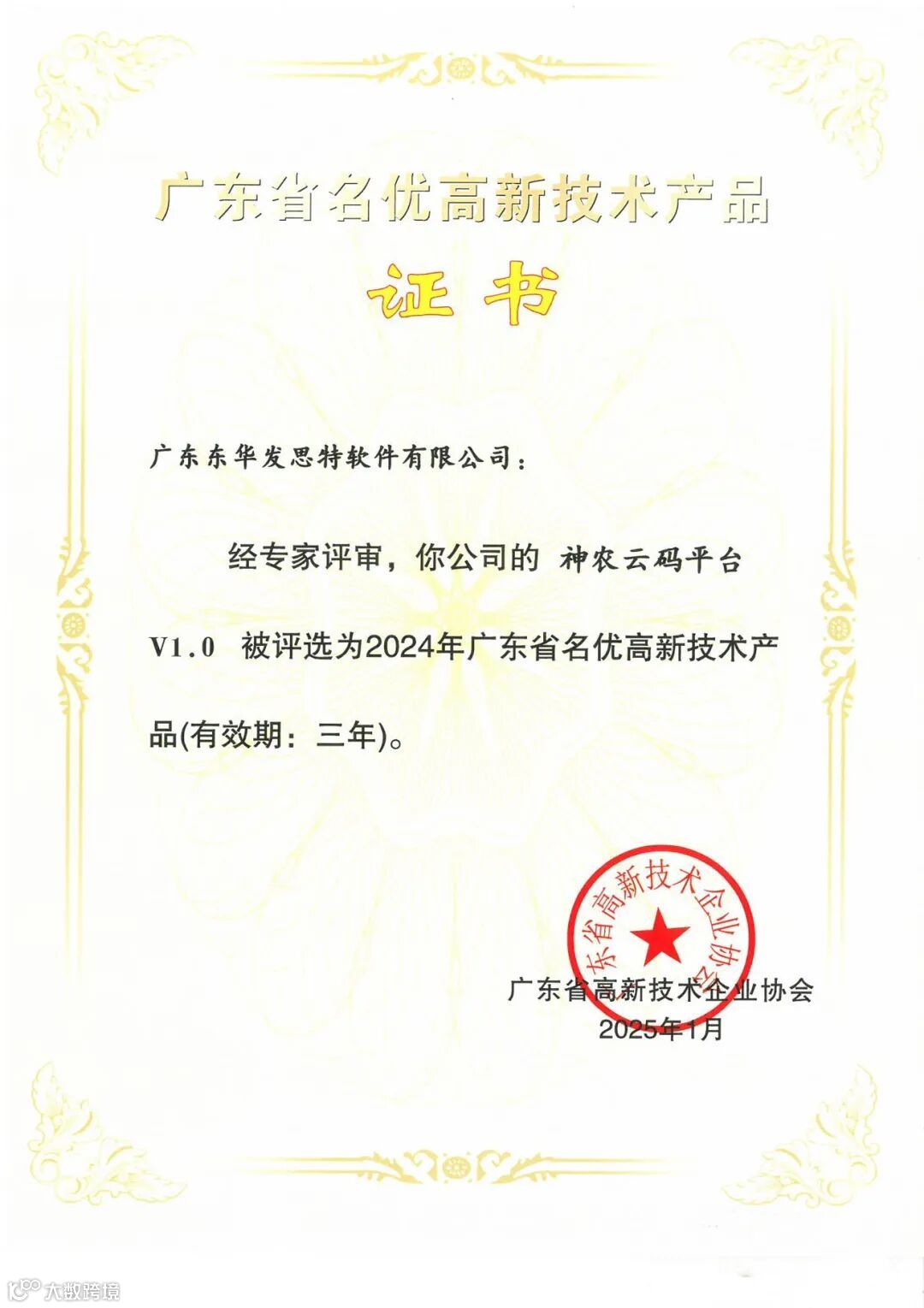 公司神农系列核心产品神农云码平台V1.0凭借着突出的创新能力以及先进的研发水平,获得2024年广东省名优高新技术产品称号。