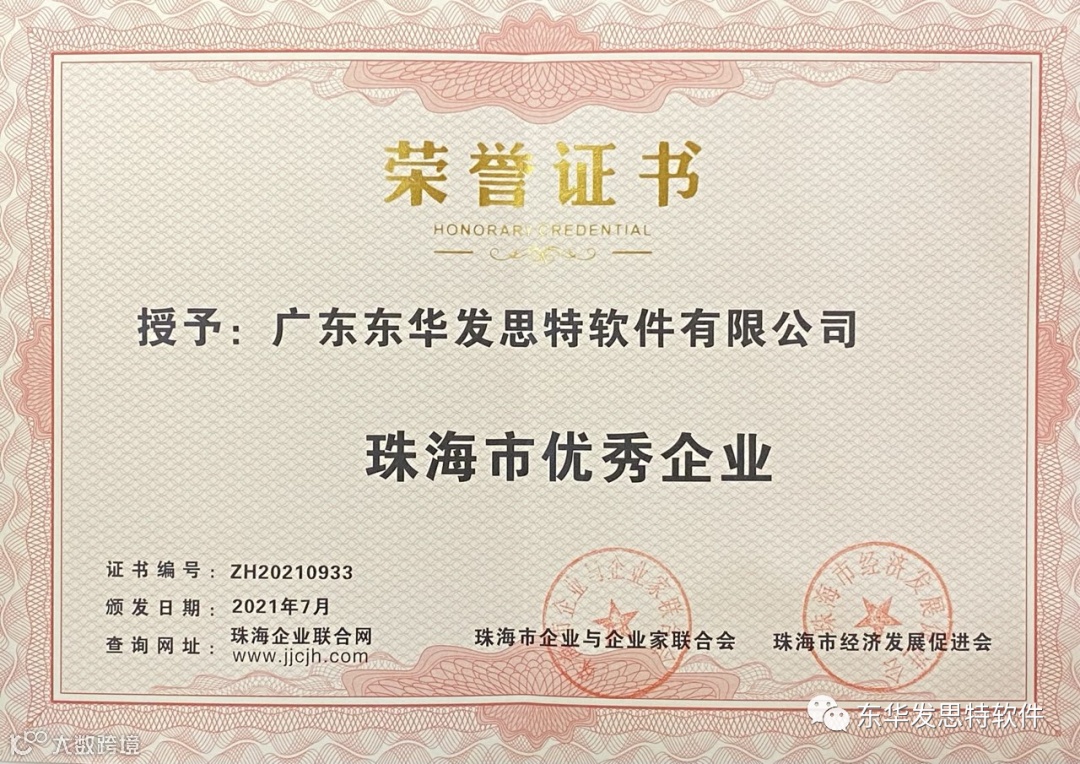 广东东华发思特软件有限公司凭借突出的经营成绩、先进的企业管理理念和新型智慧城市创新的产品体系荣获“珠海市优秀企业”,公司总裁蒙圣光荣膺“珠海市杰出企业家”荣誉称号。