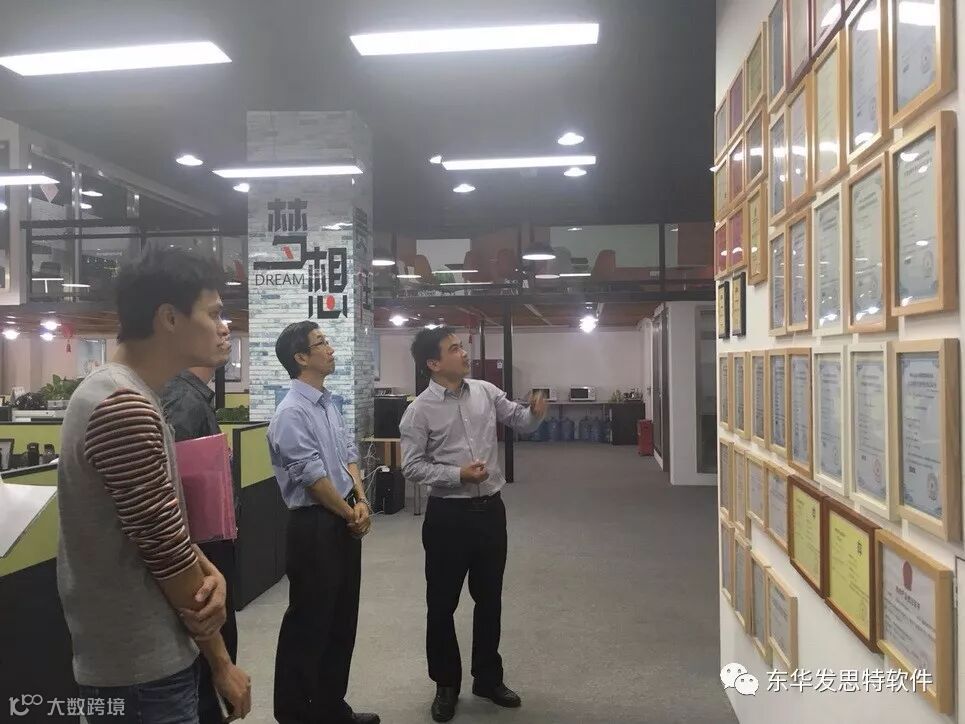 2017年11月9日下午,珠海市技师学院信息技术系何万里主任、贾云富副主任等一行领导莅临东华发思特软件进行参观交流。东华智慧城市集团执行董事、东华发思特总裁蒙圣光、HR总监全程陪同考察。