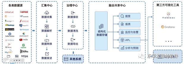 HarryData主要以汇集、治理、融合和共享四大数据处理中心入手,完成数据采集、数据处理、数据挖掘、预测预警、应急指挥、数据共享、数据开放、数据可视化。(详见下图 )