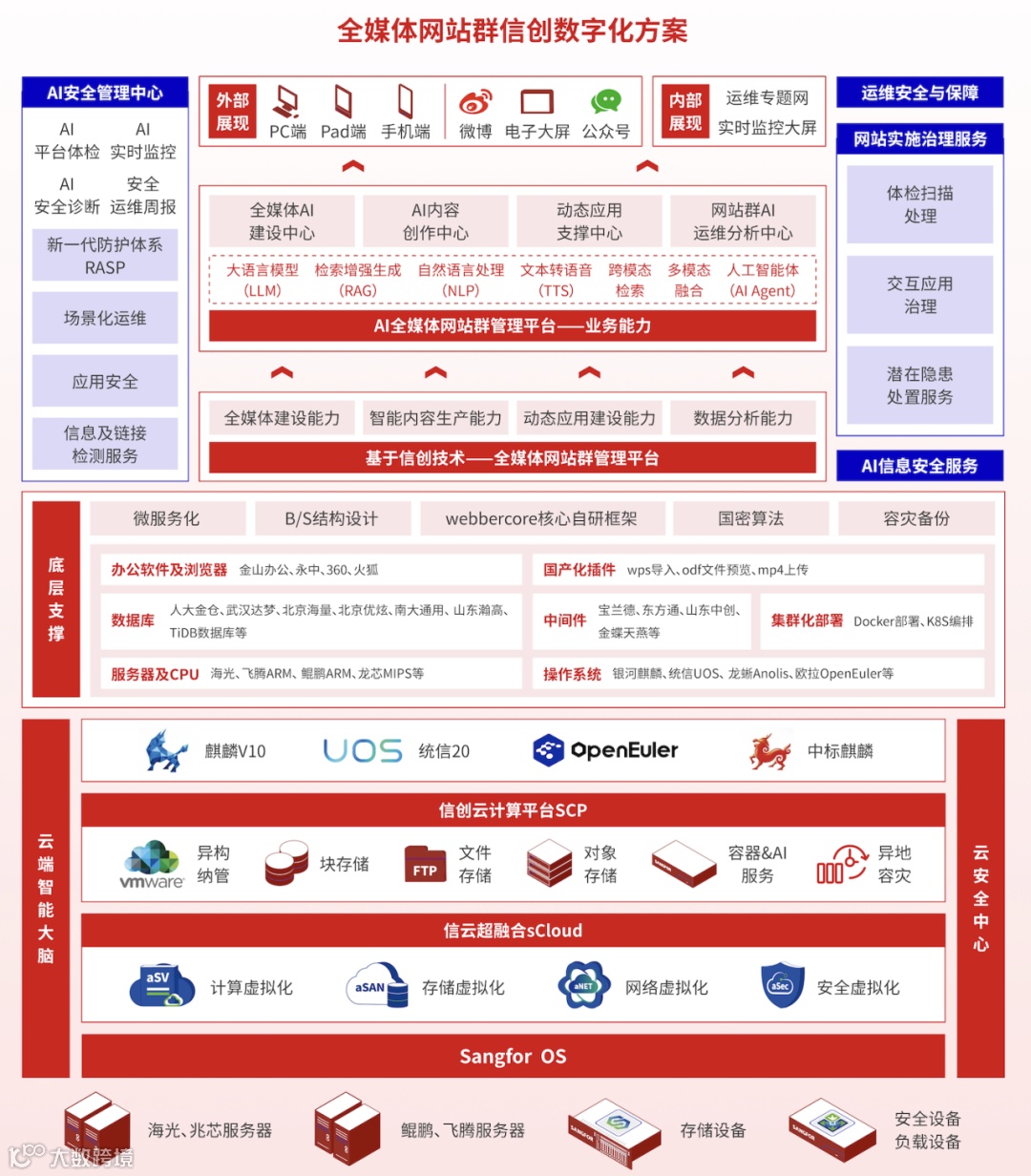 以“全栈国产化”为核心,全面覆盖网站群平台的信创适配改造、应用系统集成及开发迁移,提供一站式、安全、高性能的网站群解决方案,确保网站群从硬件到软件的全方位自主升级。
