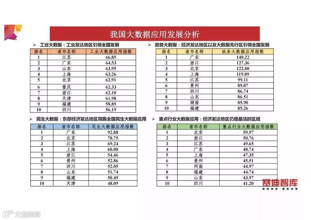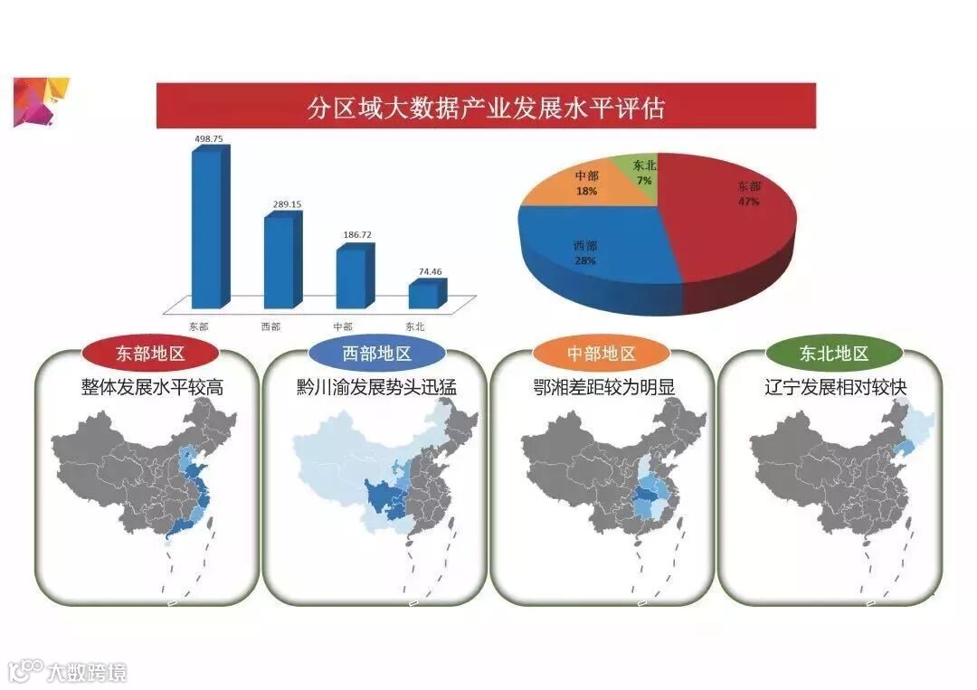 全国大数据发展逐步形成了以8个国家大数据综合试验区为引领,京津冀区域、长三角地区、珠三角地区、中西部地区四个集聚区域协同发展的格局。从分区域角度看,东部地区是大数据发展的前沿地带,占据全国大数据发展指数前10的前6个席位;西部地区紧随其后,中部地区和东北地区大数据发展相对滞后。