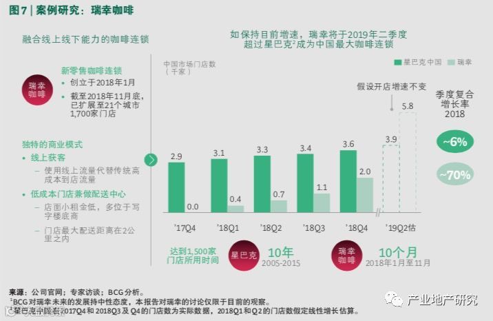 案例研究:瑞幸咖啡(参阅图 7)瑞幸咖啡作为融合线上线下能力的连锁咖啡店成立于 2018 年 1 月,并仅在成立后的11 个月,门店数量达到 1,700 家,覆盖 21 个城市。