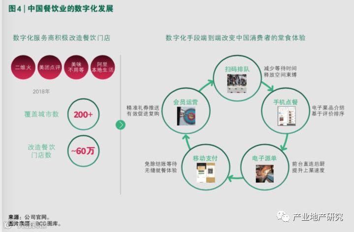 食(参阅图 4):在饮食行业,数字化完全改变了中国食客的堂食体验,形成了数字 化体验闭环。从排队、点餐、派单、支付到会员管理,均已经实现高度数字化。目前,中 国端到端数字化的餐饮门店已超过 60 万家,遍及 200+ 城市。